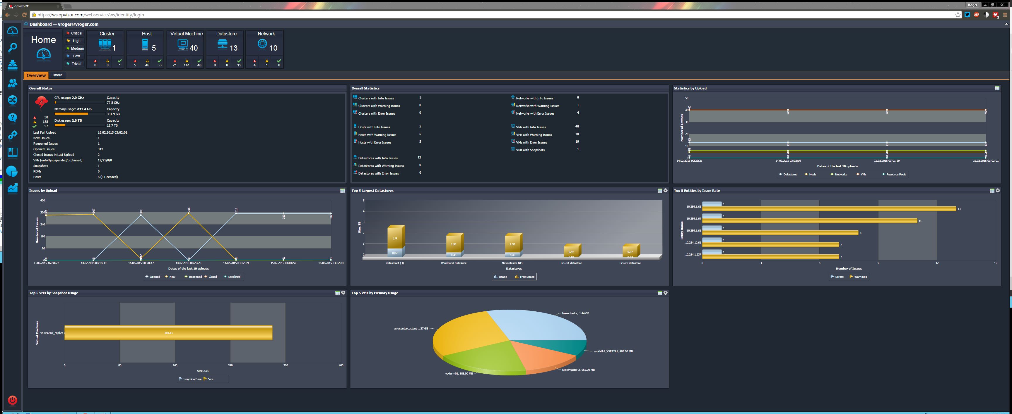 Once we login to the webpage at https://opvizor.com/login/ we see a dashboard. Where to start?  That is a lot of information.